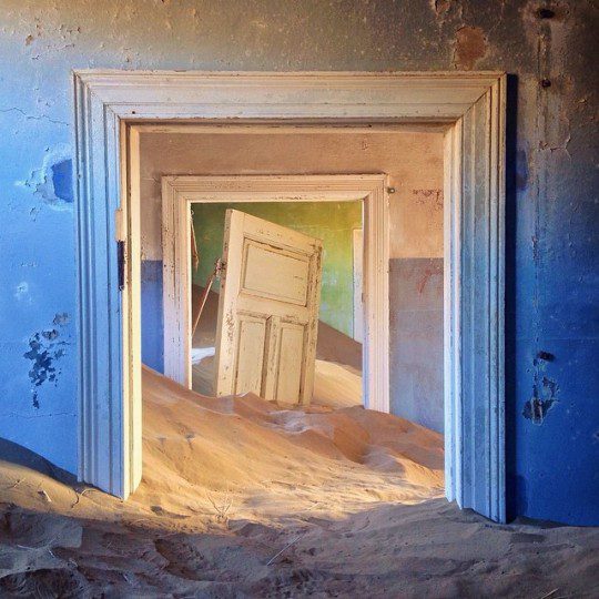 ilustração deste poema: instagram picture by @thefella, exploring the once-booming mining town of Kolmanskop, a ghost town in the Namib Desert since its abandonment in 1954. The small town near the coast of Namibia was built in the style of a German village following the discovery of diamonds in 1908, and at its height Kolmanskop boasted a hospital, casino and theater. Today, the town’s decayed European architecture stands in stark contrast to its sandy surroundings, making it a picturesque destination for adventurous Instagrammers.