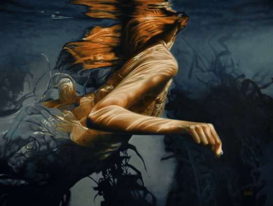 ilustração deste poema: “Labyrinth”, 30×30 Oil on canvas underwater painting from the