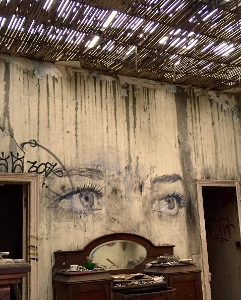ilustração deste poema: street art by r-o-n-e.com: “some quick eyes in a forgotten place”