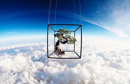 ilustração deste poema: Foto do japonês Azuma Makoto, criador de “Exobiotanica”, projeto que enviou ao espaço um buquê com diversas espécies de flores e um respeitoso bonsai de pinheiro com 50 anos de vida. Presos em balões, os vegetais foram fotografados a 30 quilômetros do chão, onde enfrentaram ventos cortantes e temperatura de -50ºC. Makoto quis conferir a estranha beleza que surgia ao libertar as plantas do solo e da gravidade, e transformá-las, mesmo que por pouco tempo, em vida extraterrestre.