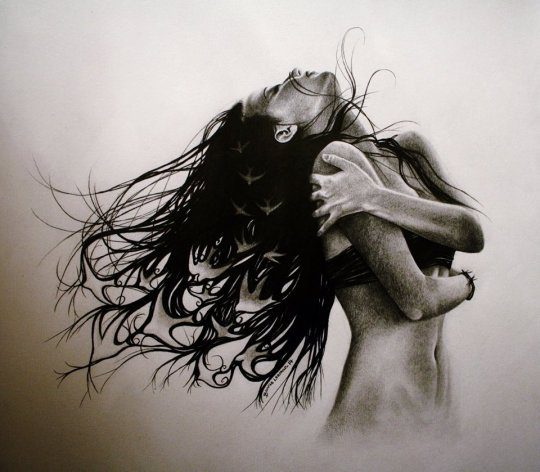 ilustração deste poema: graphite by @bonnieleemanart ’When Dreams Escape